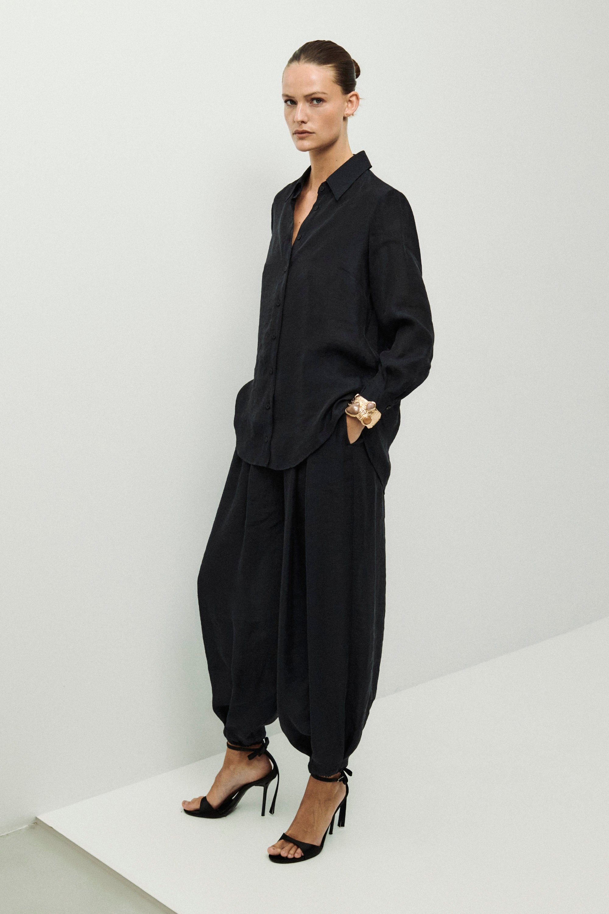 Klasyczna, przedłużana koszula LUCIE z lekko transparentnej tkaniny to model, który łączy ponadczasowy fason z nowoczesną lekkością. Delikatnie prześwitujący materiał dodaje całości subtelnej zmysłowości, a wydłużony krój pięknie wysmukla sylwetkę i pozwala na tworzenie różnorodnych stylizacji. To idealny wybór dla kobiet ceniących minimalizm z nutą elegancji. Na co dzień noś ją ze spodniami LUE lub dzwonami COPPER. Na wieczór stwórz elegancki zestaw ze spodniami SOANA uszytymi z tej samej tkaniny, tworząc zestaw, który wyglada jak elegancki kombinezon. Swoją stylizację uzupełnij biżuterią w minimalistycznym stylu, wygodnymi sandałkami na obcasie i małą wieczorową torebką.