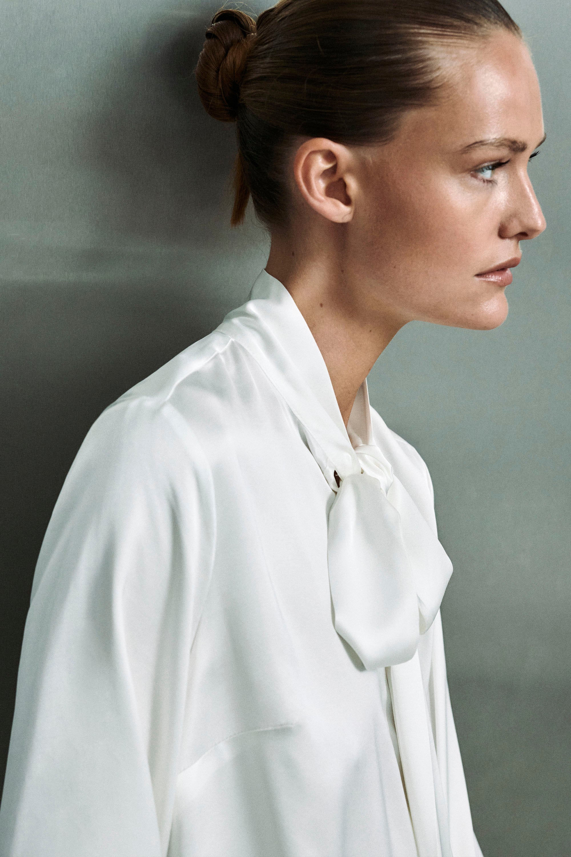 Elegancka bluzka MANON z zakładanym dekoltem i wiązaniem pod szyją, uszyta została z miękkiej satyny wiskozowej o subtelnym połysku. Lekko opływa sylwetkę, tworząc nowoczesny, kobiecy look. Zakładany dekolt (kopertowy) wysmukla szyję i podkreśla linię biustu, zachowując elegancki charakter. Taki dekolt idealnie sprawdzi się dla sylwetek o dużym biuście, jak i szczupłych sylwetek. Wiązanie pod szyją pozwala określić charakter stylizacji, od romantycznej kokardy po luźniejszy, nonszalancki węzeł. Ta elegancka i niezwykle kobieca bluzka pasuje zarówno do biura, jak i na wieczorne wyjścia, jest uniwersalna i zawsze efektowna.