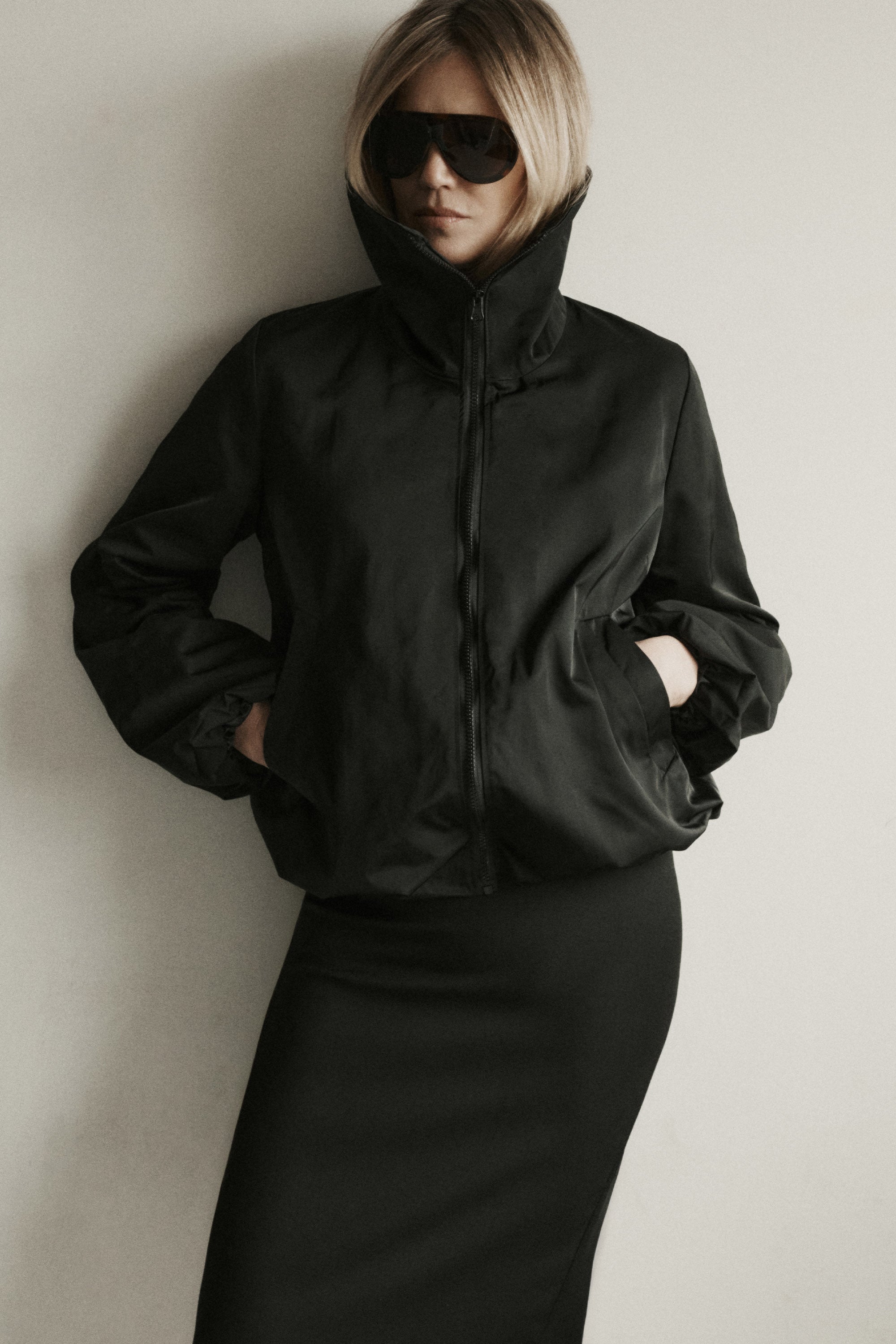 Kurtka wykonana z tkaniny przypominającej satynowy ortalion w najmodniejszym fasonie sezonu. Wysoki kołnierz i zapięcie na zamek podkreślają nowoczesny, miejski charakter modelu. Gumki w dole rękawów i u dołu kurtki nadają formie objętości i zapewniają wygodne dopasowanie. To wyrazisty element garderoby, który doskonale uzupełnia współczesne stylizacje. Zestaw ją z ołówkową spódnicą ANJA lub spodniami COPPPER czy CAMILA.