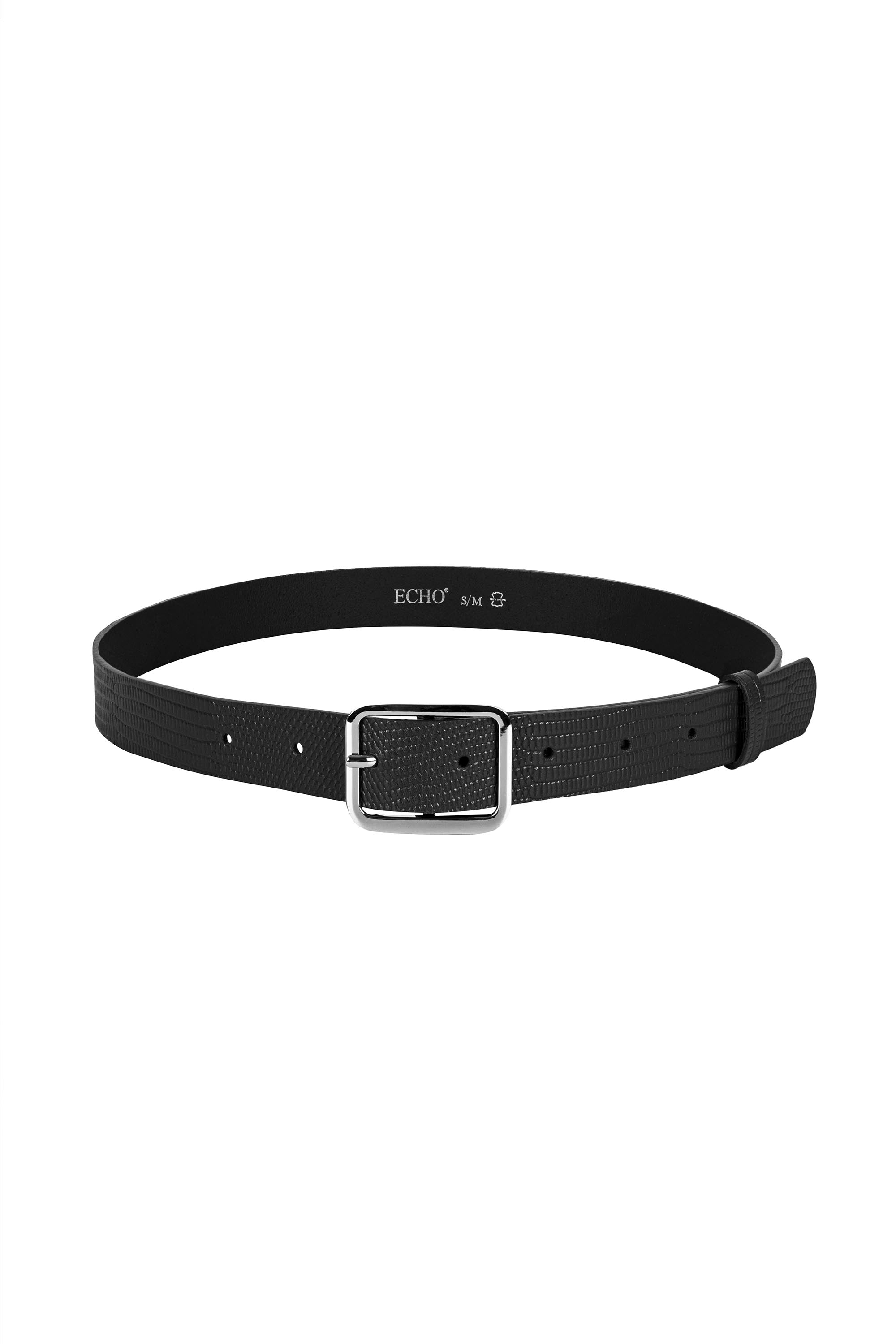 Pasek ze skóry z klamrą w kolorze srebrnym