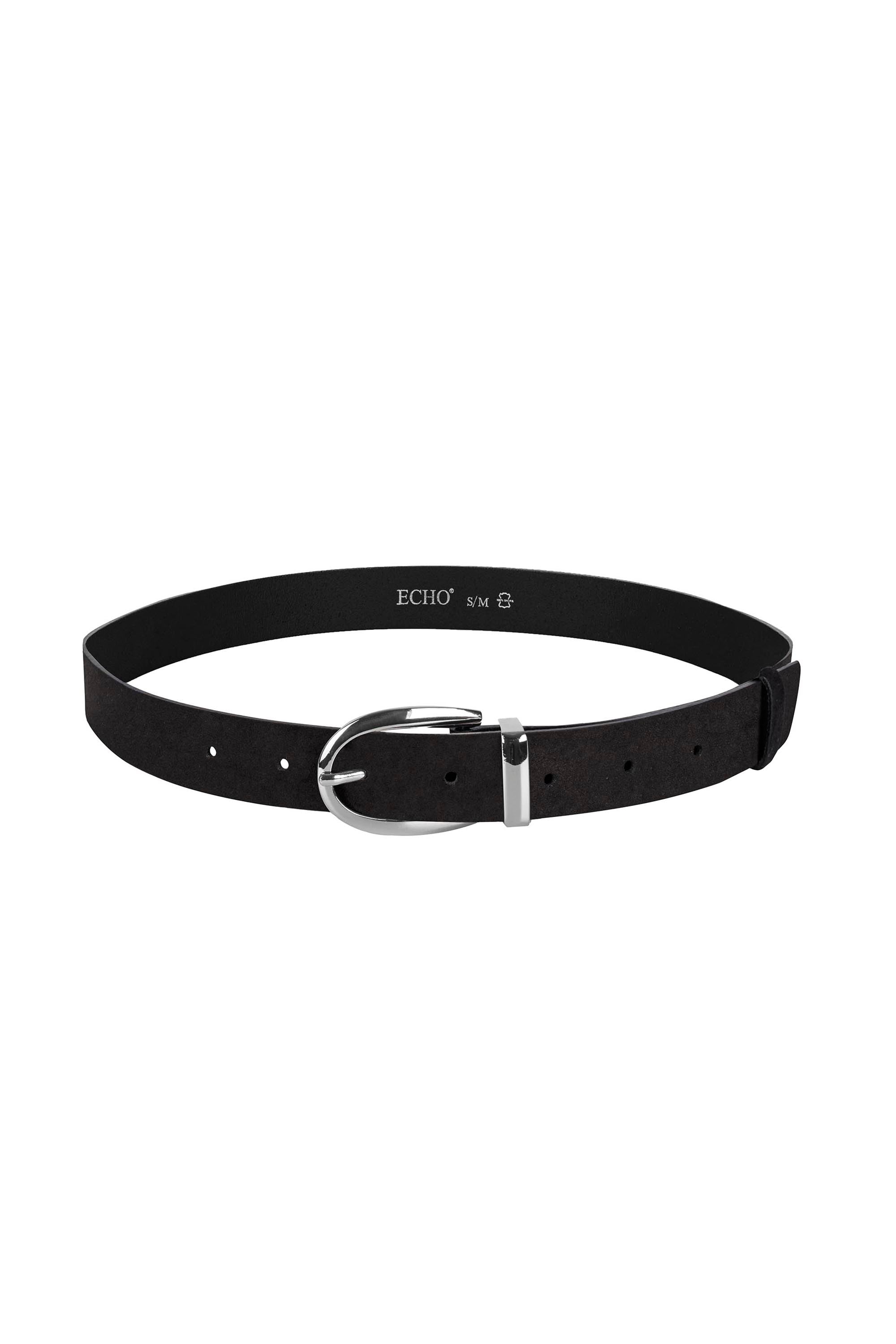 Pasek ze skóry z klamrą w kolorze srebrnym