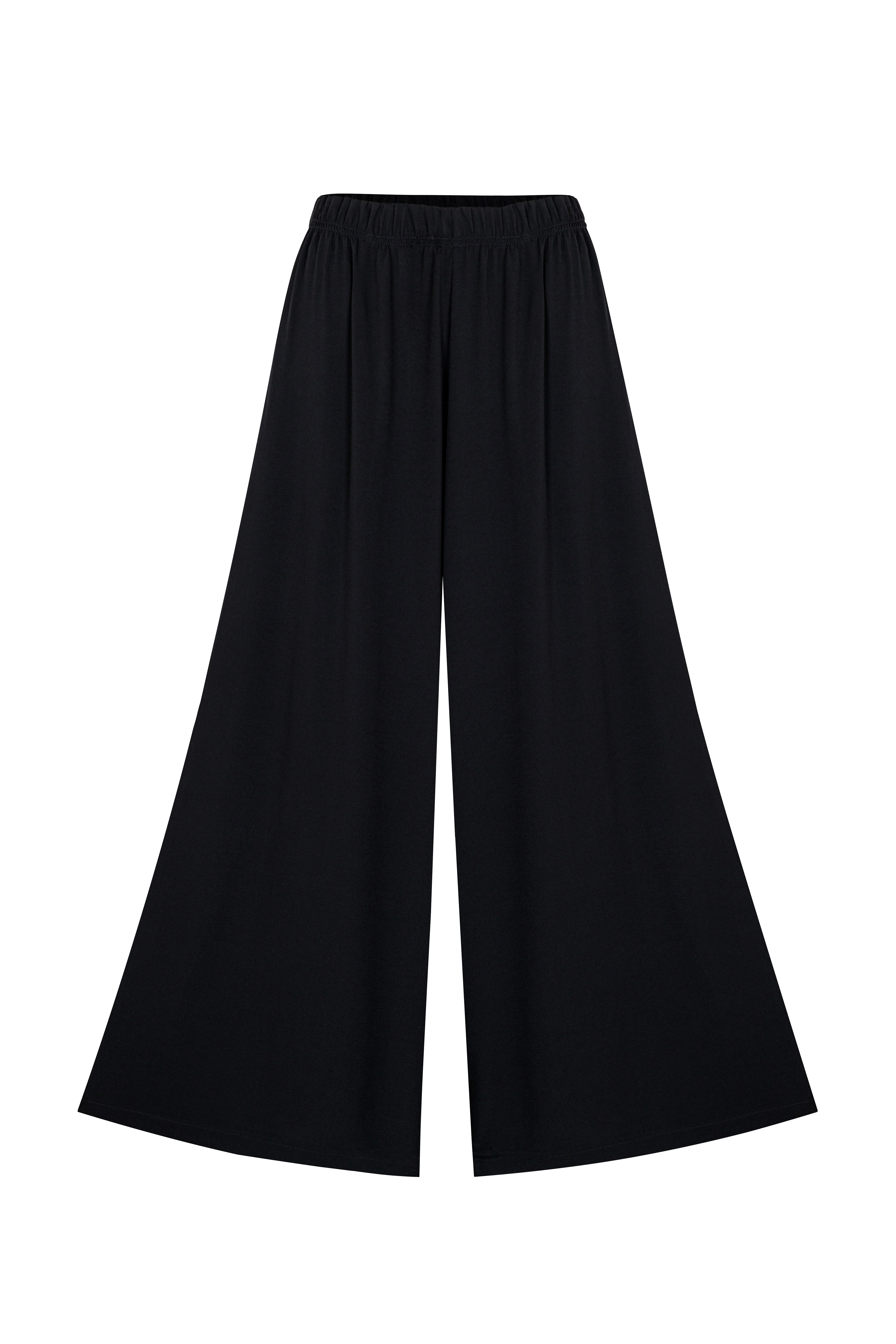 Bardzo wygodne, praktyczne i uniwersalne spodnie z miękkiej, oddychającej wiskozy, z szeroką nogawką i gumą w pasie, łączą wygodę z eleganckim luzem. Praktyczne kieszenie dodają funkcjonalności, a uniwersalny fason pasuje do każdej sylwetki. Noś je z jedwabną koszulą i szpilkami na wieczór, z dopasowanym topem i sandałami latem lub z oversize swetrem i botkami w chłodniejsze dni. Komfort, który wygląda tak dobrze, jak się nosi.